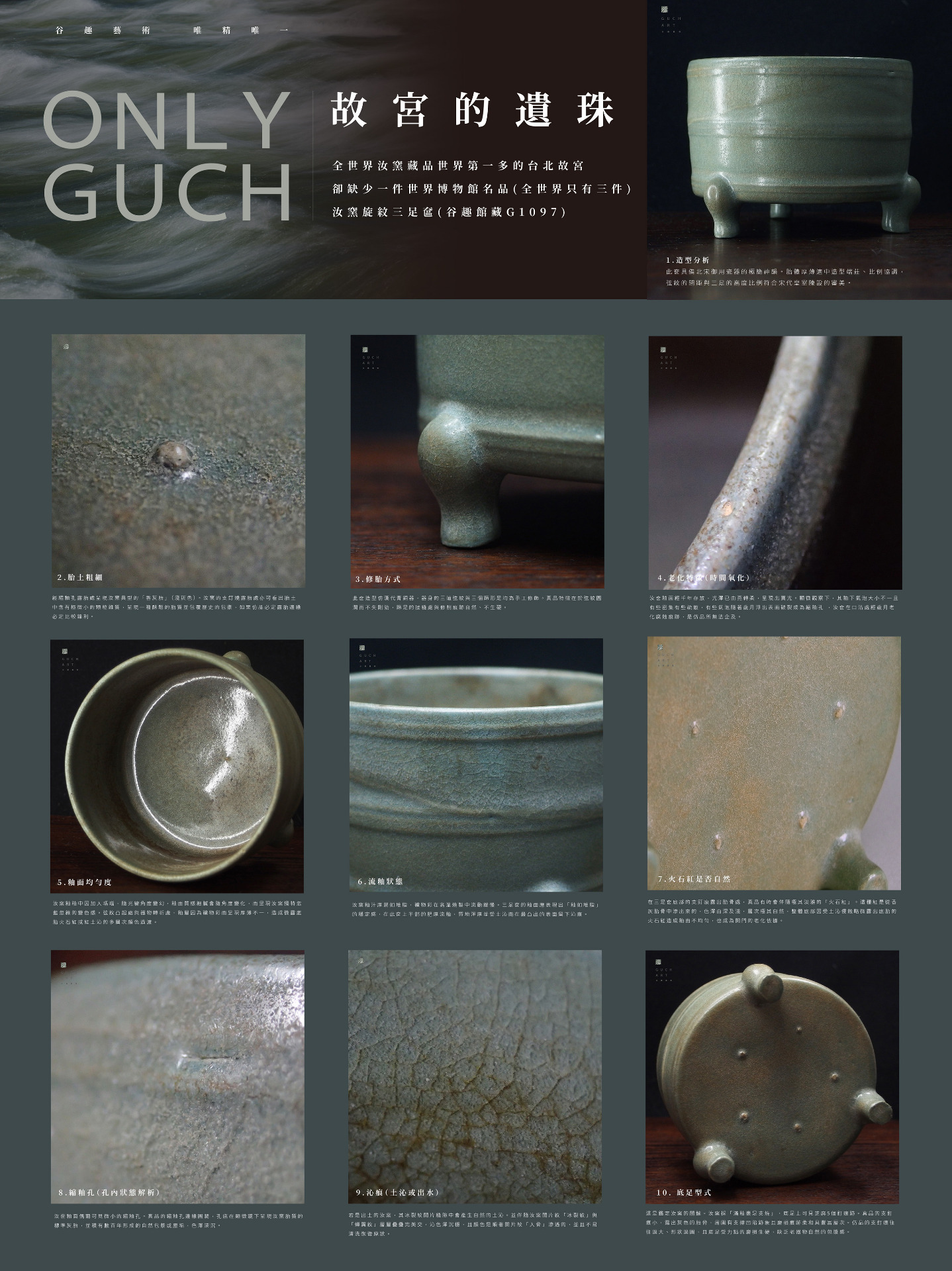 宋代(960-1279年)是中國美學史上的黃金時代。與唐朝的雍容華貴不同,宋代崇尚極簡、內斂、素雅的風格。在這一時期,陶瓷藝術達到了前所未有的高度,並誕生了被後世公認為「瓷器之巔」的五大名窯:汝、官、哥、鈞、定。GUCH ART 谷趣藝術中心隆重推出【宋瓷五大名窯特展】,帶領觀眾深入宋代文人的精神世界,品味那份藏於器物中的沉靜之美與雅致之趣。人極簡、內斂、而充滿禪意的生活哲學的機會。