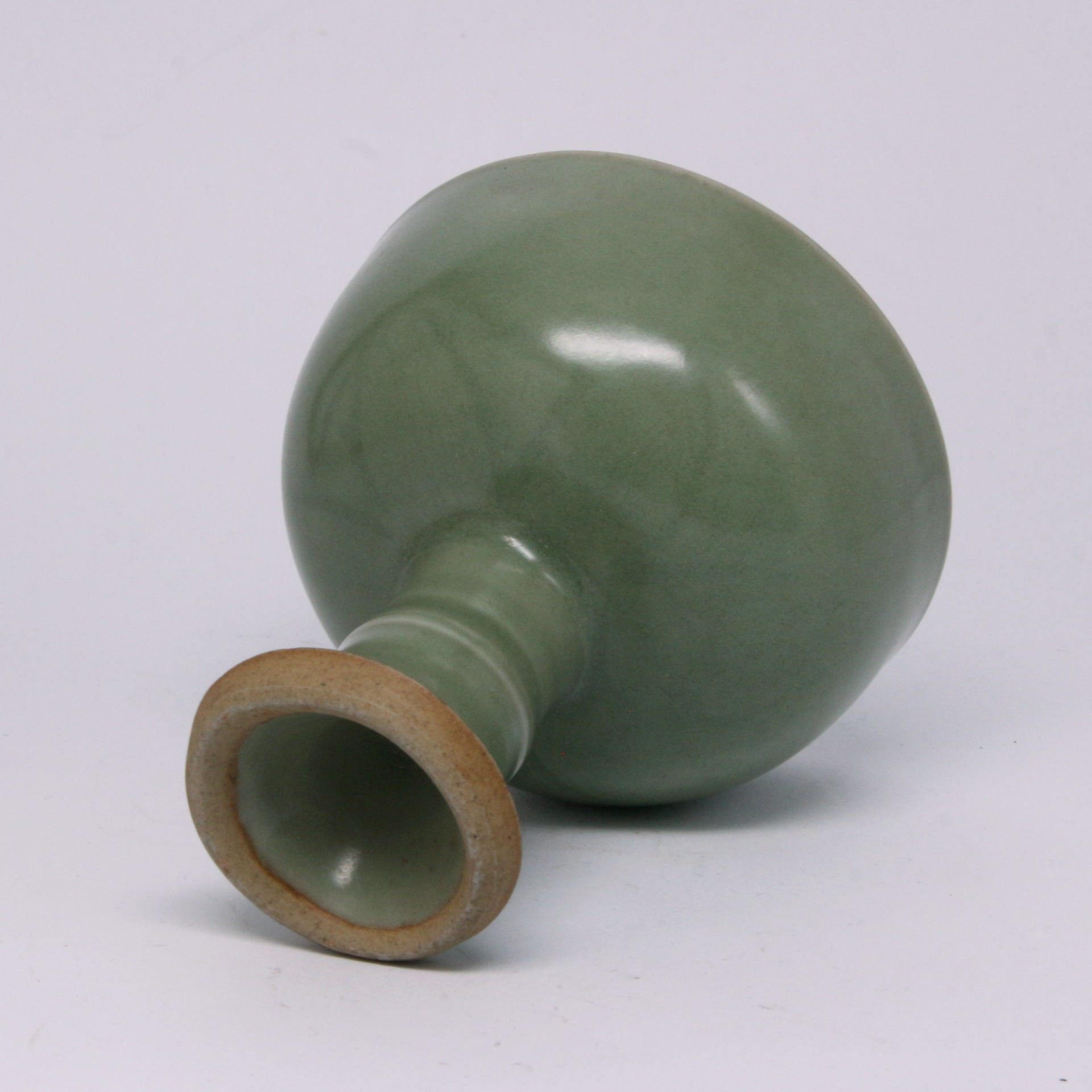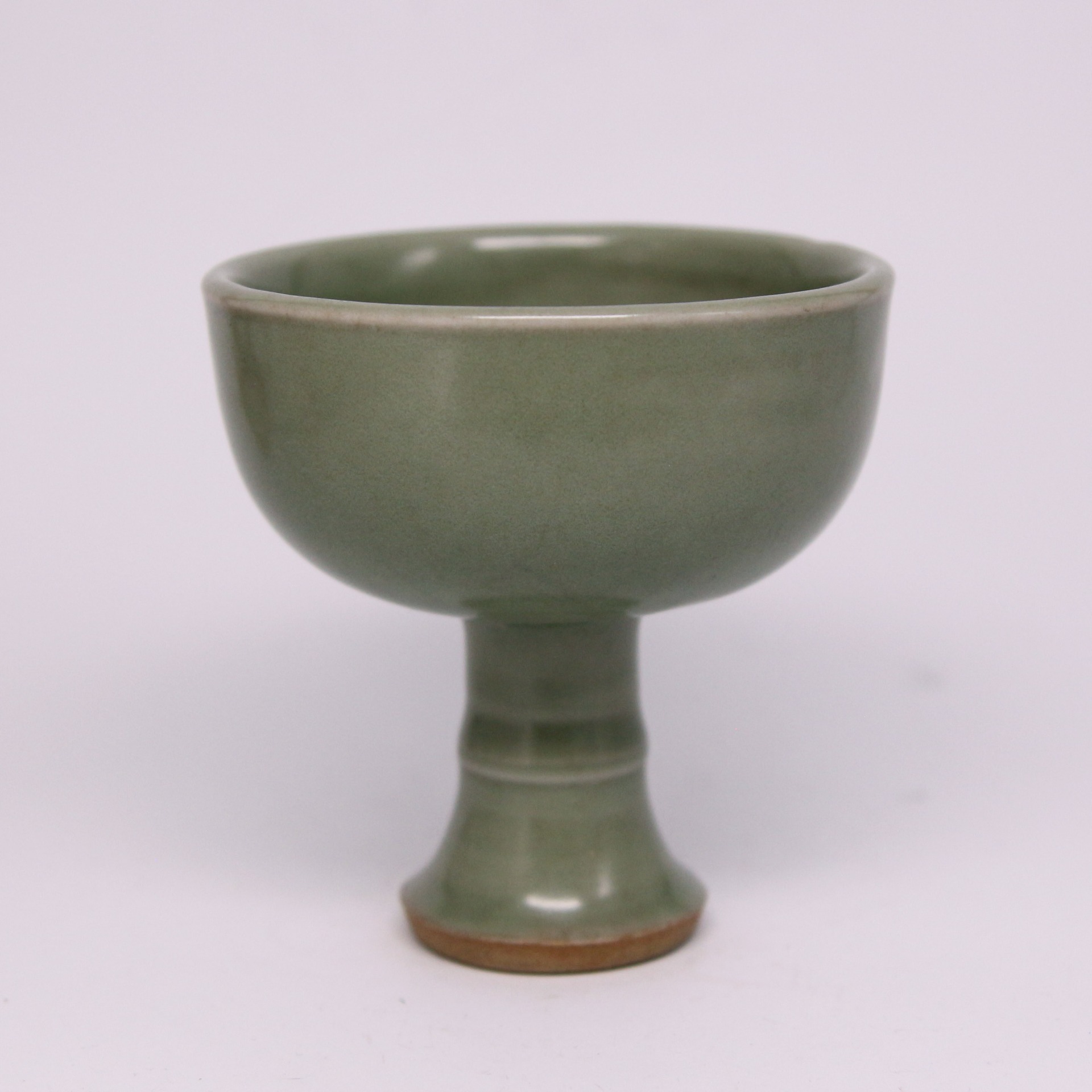此杯造型優雅,上部為敞口圓腹,下承以竹節狀高足,這種設計反映了元代蒙古文化與中原陶瓷工藝的結合。高足便於抓握與繫繩,適應當時遊牧民族隨身攜帶、隨時飲宴的習俗,故又稱「馬上杯」。其釉色呈現典型的龍泉青翠滋潤感,質地如玉,充分展現了元代龍泉窯厚釉工藝的高超水準。
