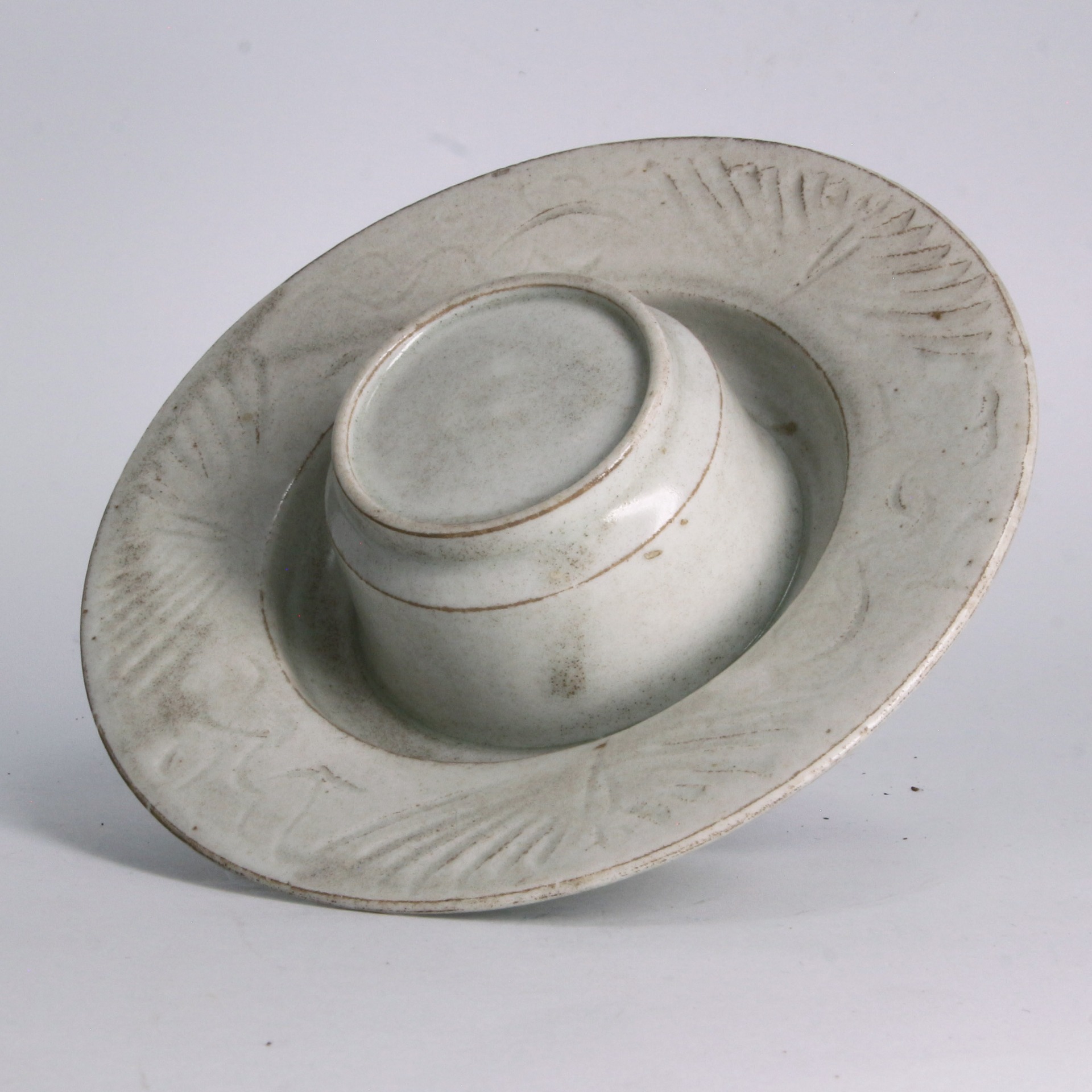 宋代茶道盛行,盞托作為點茶儀軌中的重要承器,承載著極高的文化與審美價值。此件湖田窯盞托以其純淨素雅的釉色與簡潔流暢的線條,完美契合了宋代文人追求的「清、靜、雅」審美意境。其造型端莊而不失輕盈,釉面在光影下流轉出的瑩潤光澤,賦予了器物獨特的生命力,充分展現了景德鎮窯系在宋代巔峰時期的審美風尚。作為文房雅玩或茶席之上的陳設,此器不僅是研究宋代茶文化的重要實物資料,亦是極具收藏價值的精品,靜謐中盡顯古雅風華。