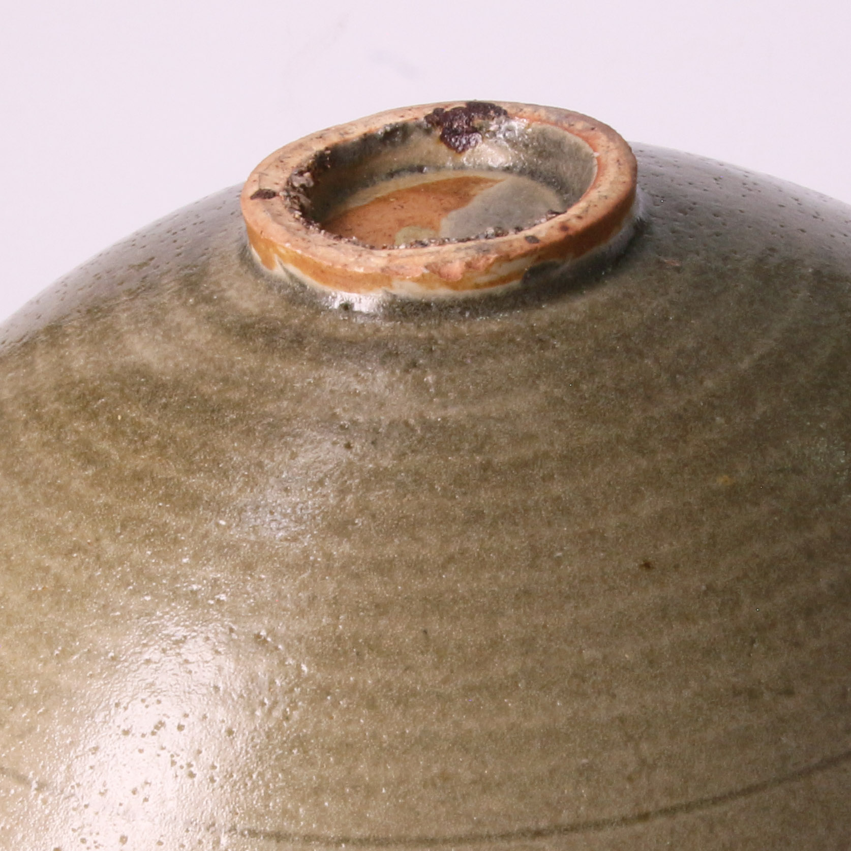 在釉色與工藝細節上,此盞施以具有玻璃質感的青綠釉,釉色深沉而清亮。由於刻花處胎體高低不平,釉料在燒製過程中自然流動聚集,形成了「釉厚處色深、釉薄處色淺」的視覺效果,使牡丹紋飾更顯層次深邃。器表光澤溫潤,釉面可見細微的氣泡與開片,展現了耀州窯「巧如範金,精比琢玉」的極高燒製水平,既體現了皇室官用瓷的精緻,也蘊含了宋代文人雅士的審美趣味。