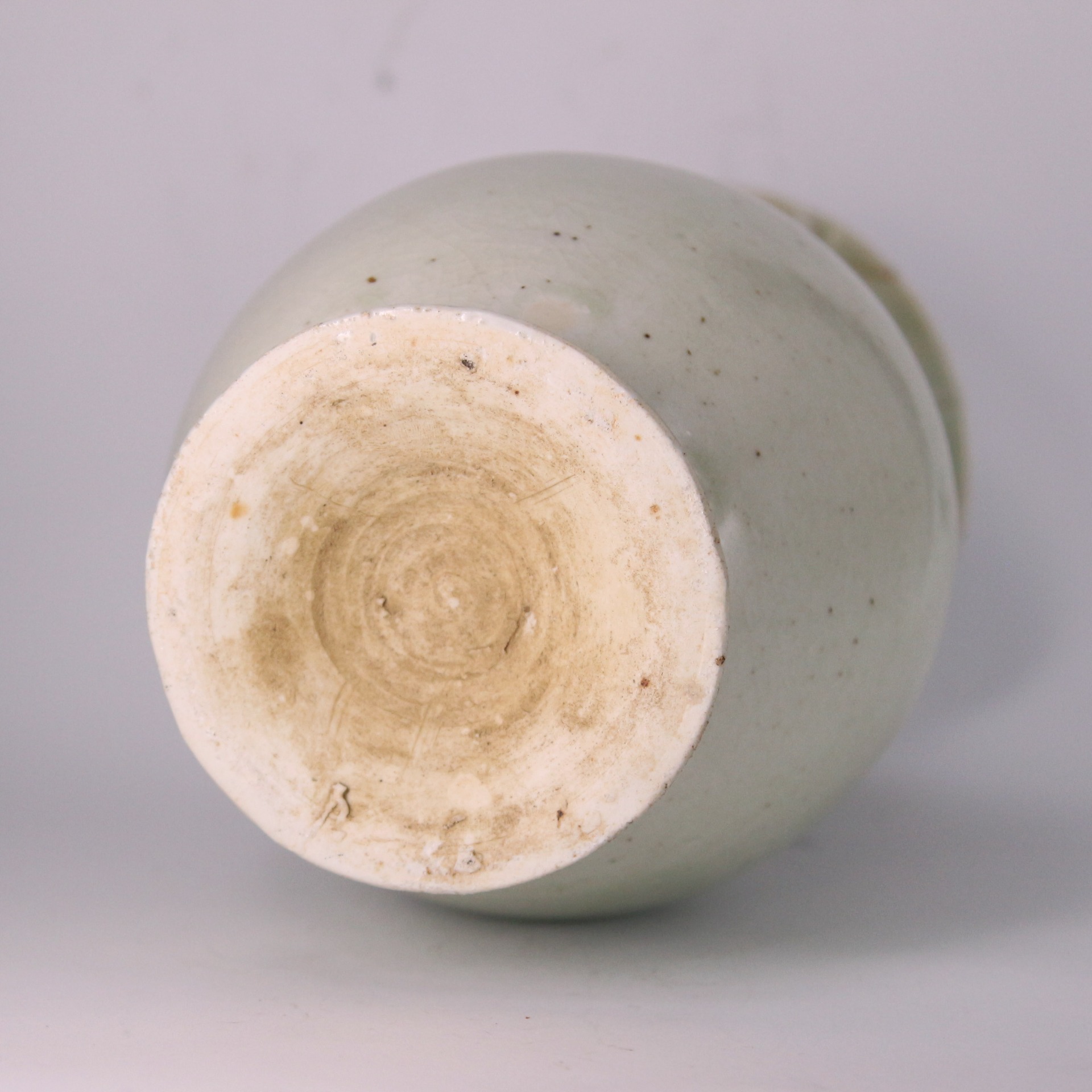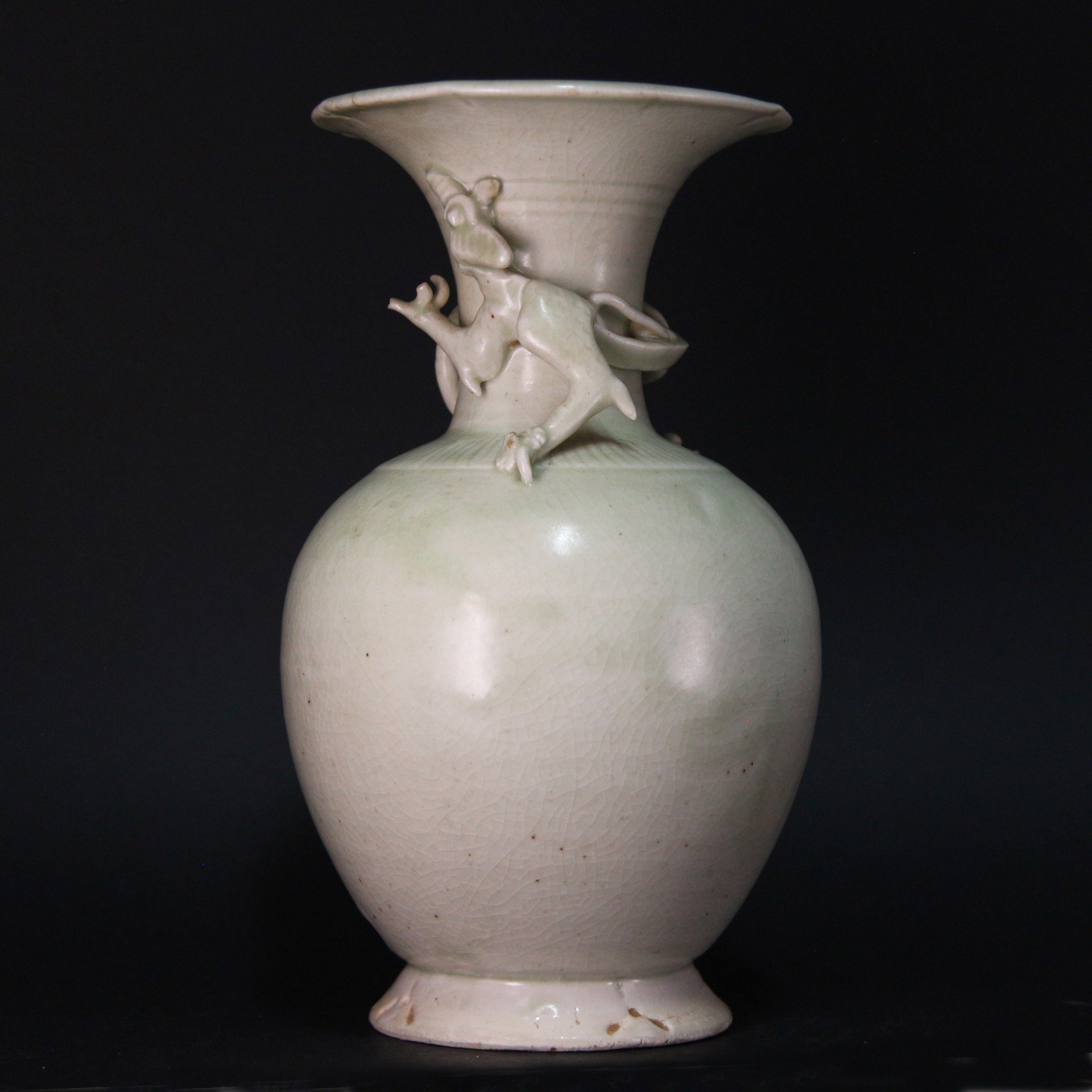此器施以著名的影青釉(青白釉),其特色在於「青中帶白,白中閃青」。在堆塑的縫隙與刻花處,釉層堆積呈現出深邃的湖水青色,而凸起之處則色澤瑩白。釉面薄而透明,質地如冰似玉,極具通透感。整件器物在光線下,龍身的細節與瓶身的曲線交相輝映,充分體現了宋代青白瓷「饒玉」的美譽,散發著優雅且清新的文人氣息。
