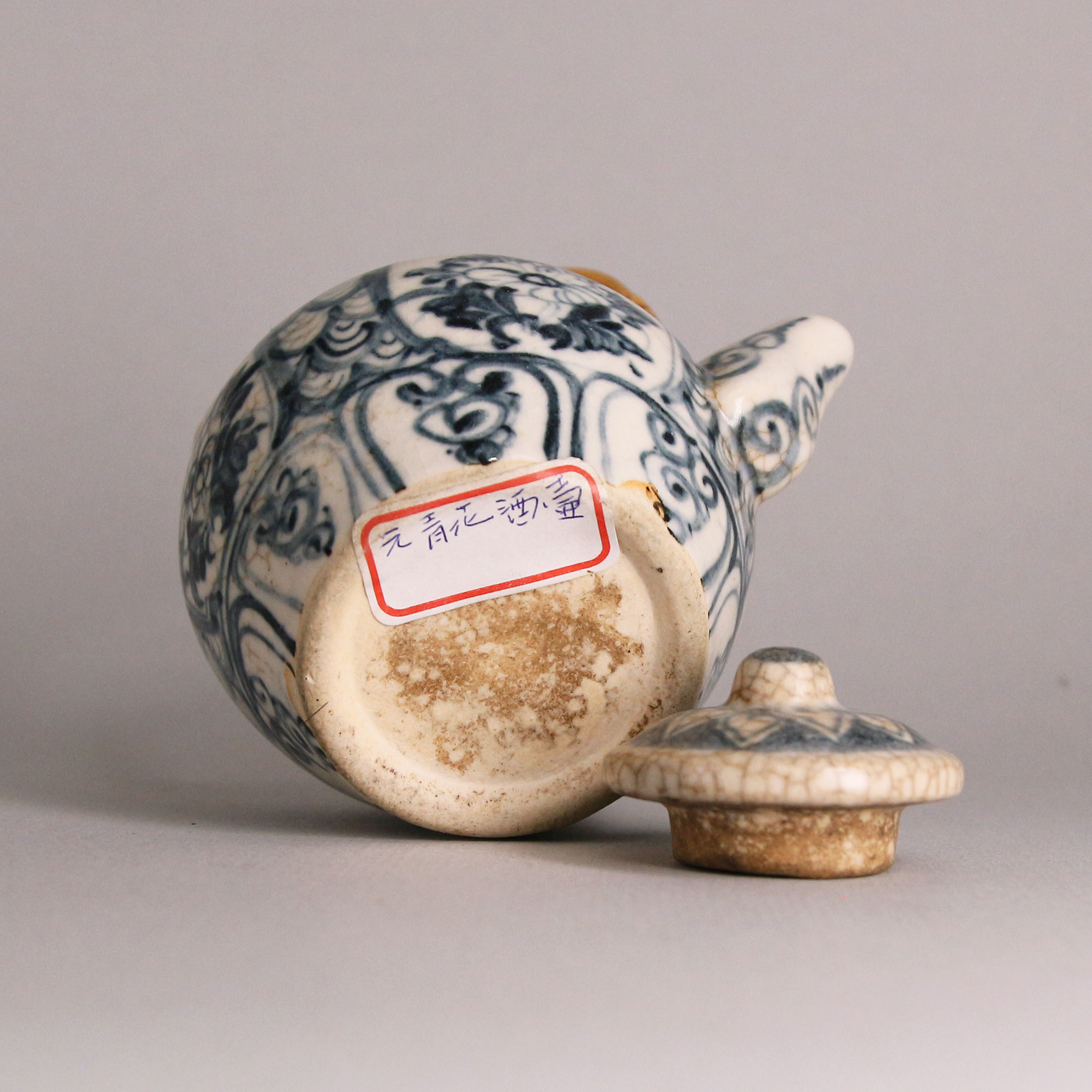 元代青花以進口「蘇麻離青」為料,發色深邃華麗,為中國瓷器史上劃時代的創新。此小壺不僅展現元青花的早期風貌,更體現文人與茶文化交融的生活美學,為研究元代青花工藝與審美意識的重要實例。