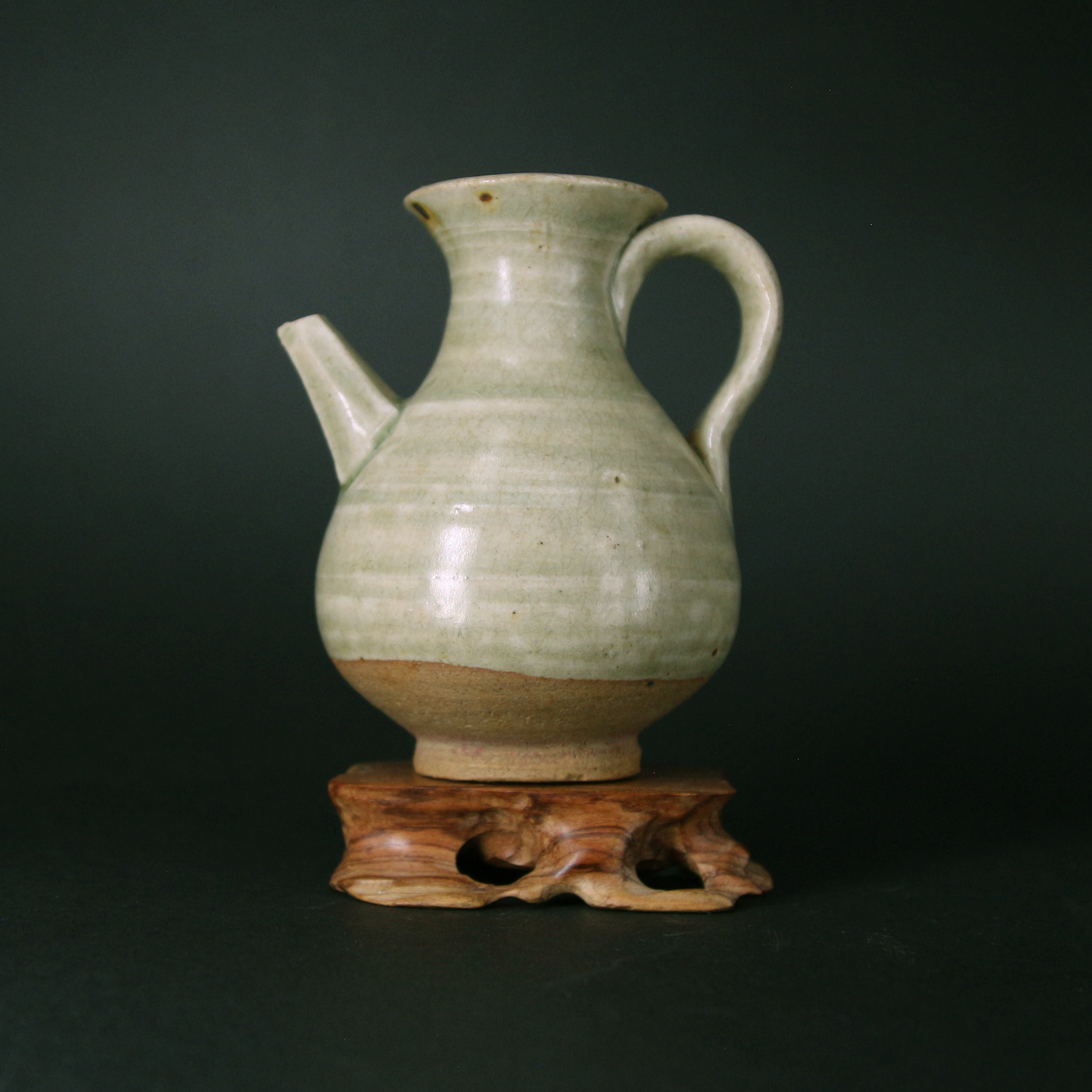 秘色瓷為唐代貴族與宮廷所珍愛之器,其青釉之美,寓意清淨高雅,如雲煙般淡遠。此小壺不僅是飲器,更凝結了唐人對自然與器物之美的追求。青釉之間,流轉著盛唐文化的風華與審美精神,靜觀之下,彷彿可聞千年前茶香悠悠。