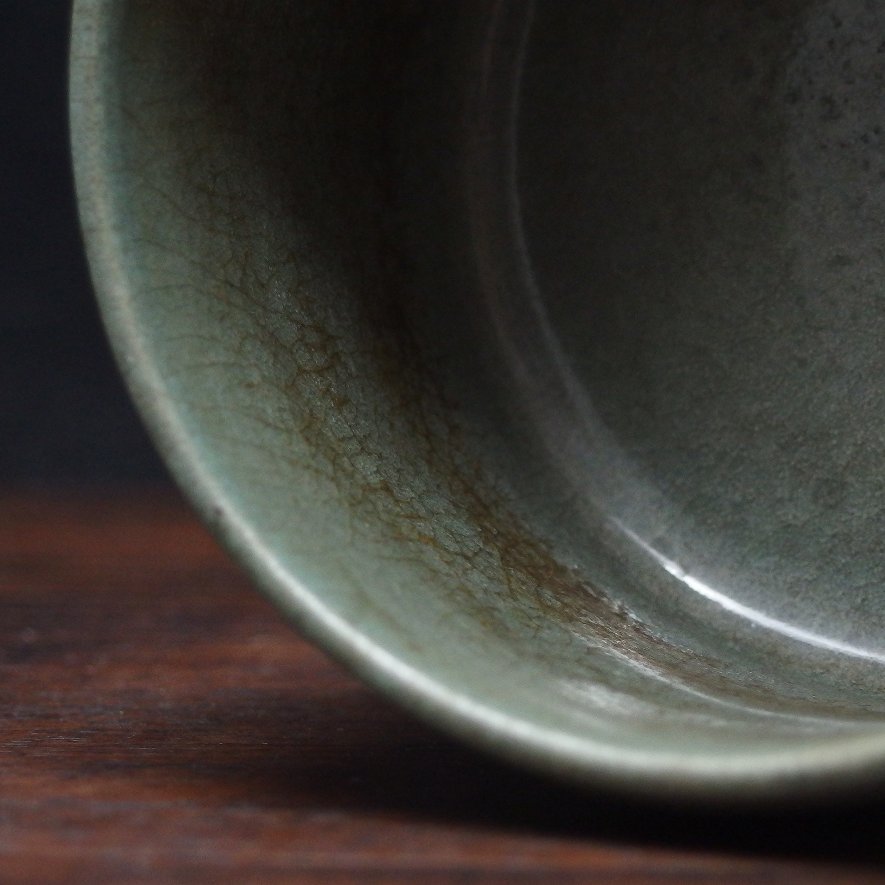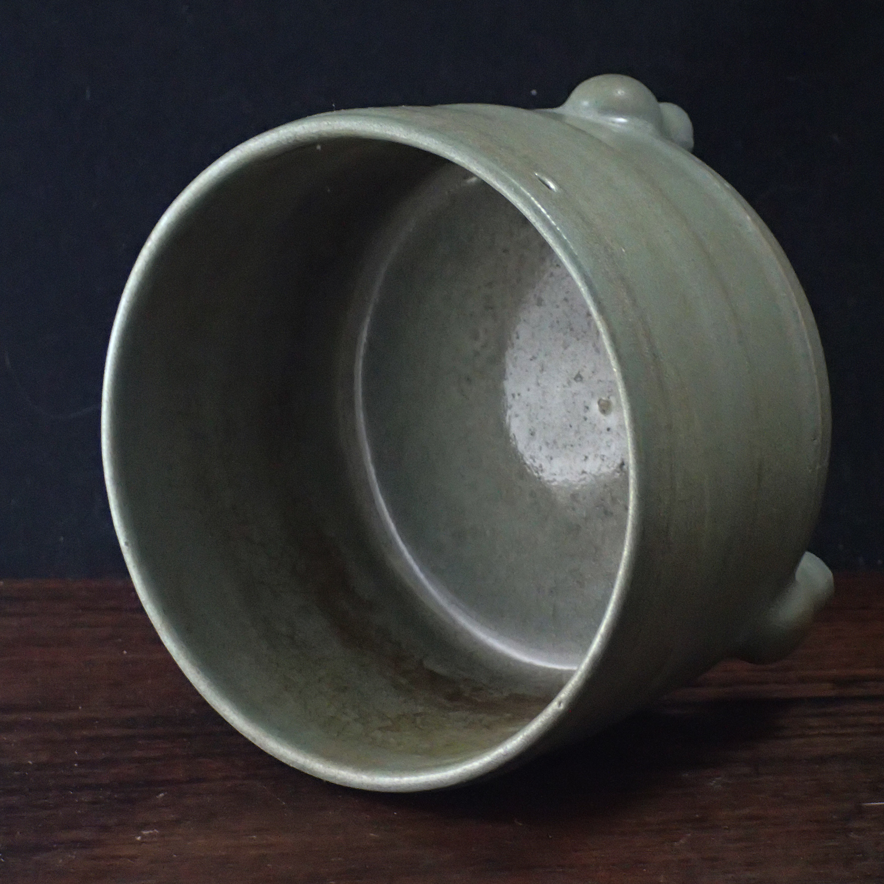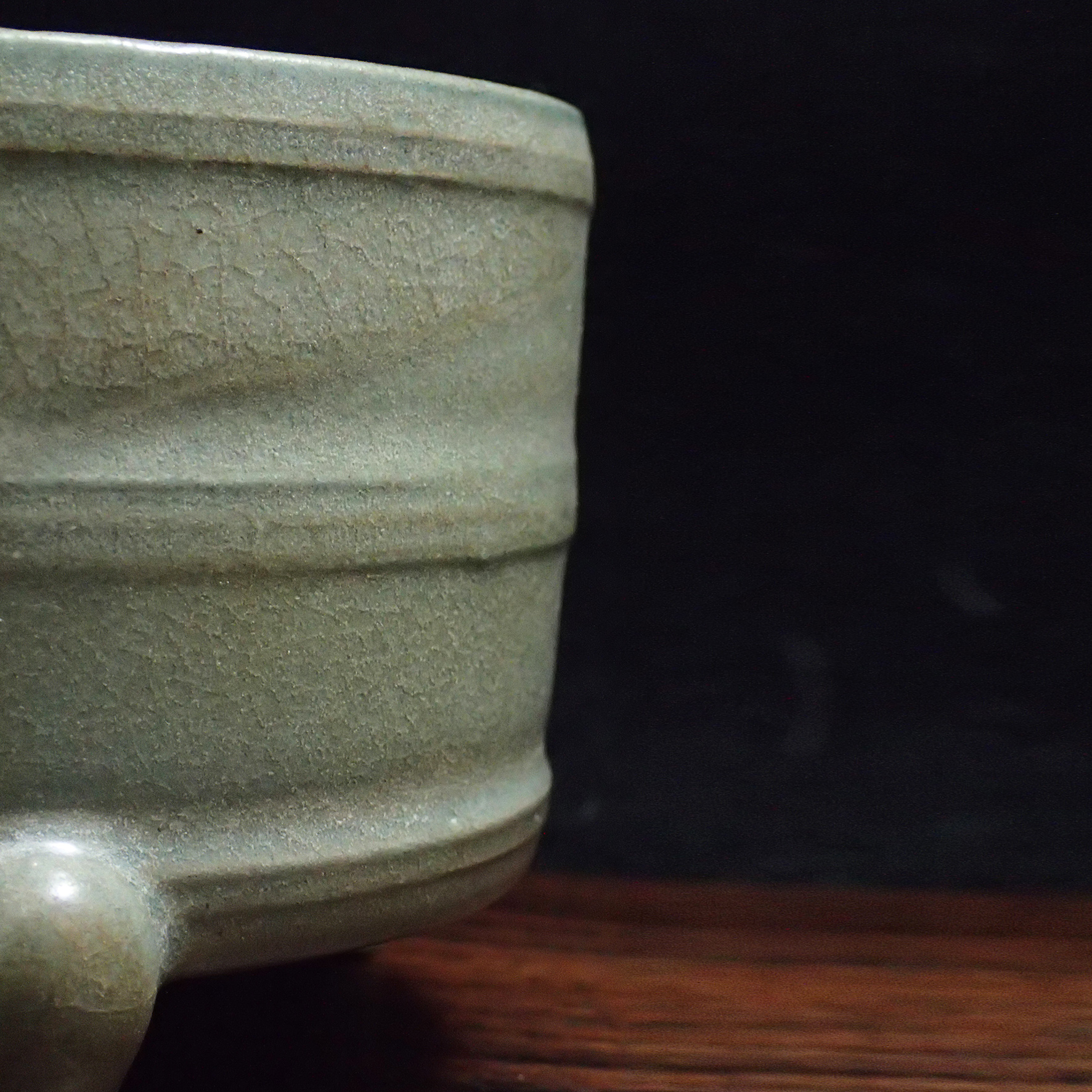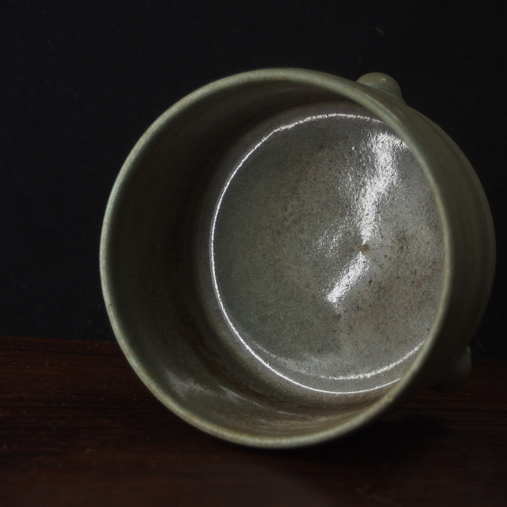 奩原為盛妝、置細物之器物,於宋代文人生活中,不僅實用,更是日常審美的延伸。汝窯為北宋五大名窯之首,其器多為宮廷御用,講究「簡中見雅,素中見貴」。此件弦紋三足奩摒棄繁複裝飾,以一色天青寄託天地清氣,以環繞弦紋象徵秩序與節制,展現宋人崇尚理性、靜觀萬物的精神境界。器物靜置案頭,如一池澄澈秋水,使人心緒自然沉澱,於素雅之中感受時光的深遠與文明的溫度。