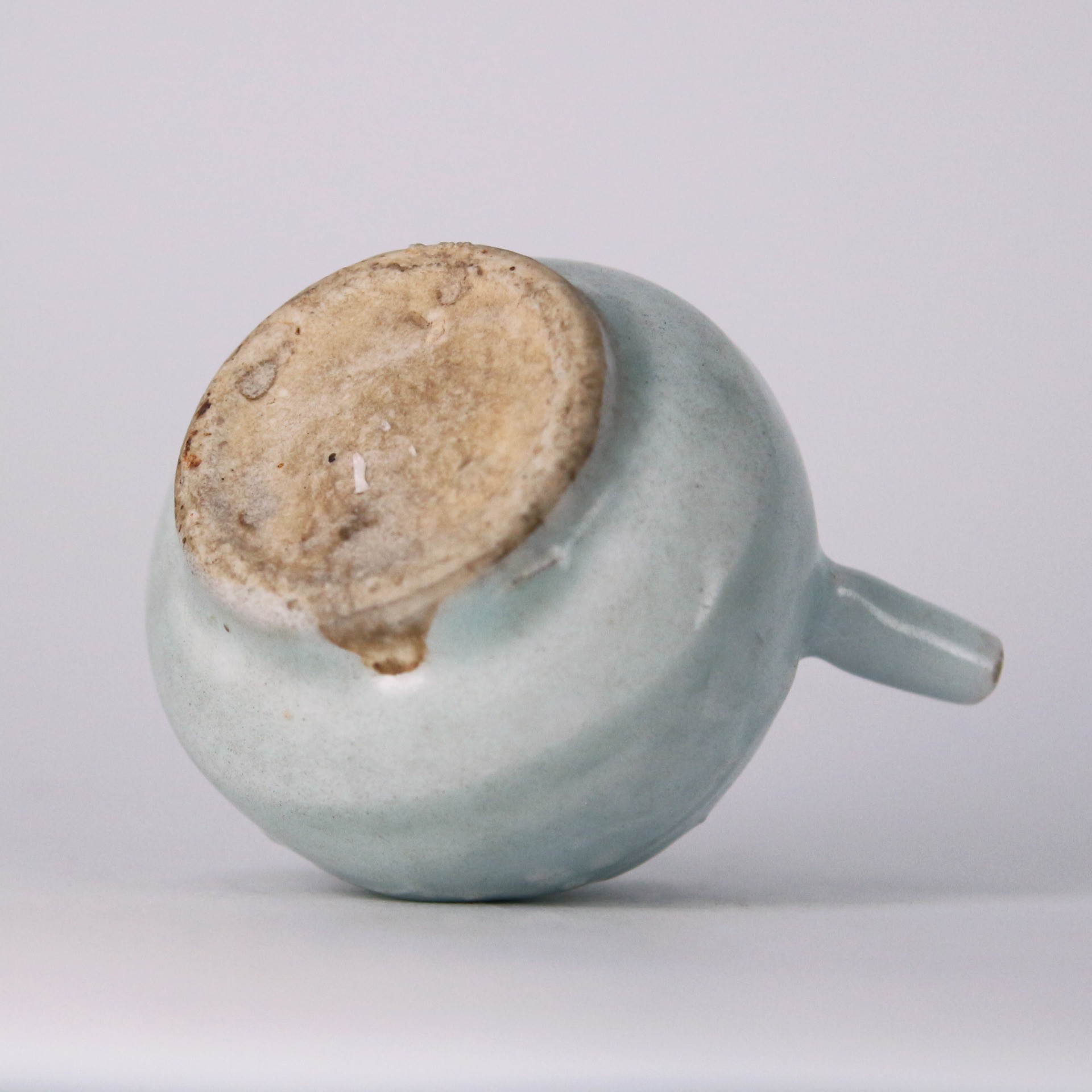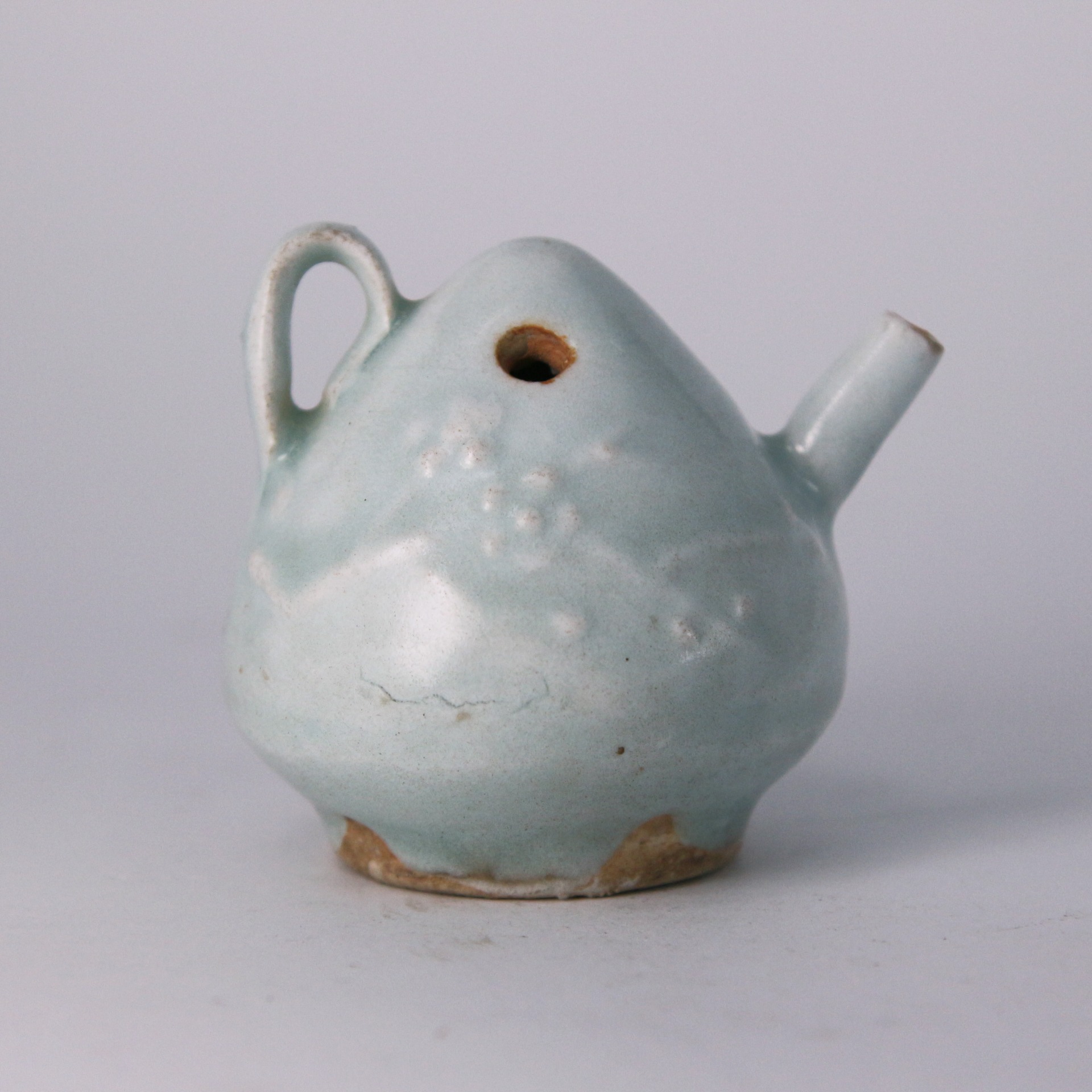水滴是文房四寶中用以調節墨汁濃淡的必備工具,反映了宋代文風鼎盛與對精緻生活的重視。湖田窯在宋代代表了影青瓷燒造的最高水準,這件作品結合了當時流行的梅花題材,象徵文人清高孤傲的品格。這種兼具實用功能與藝術美感的案頭小物,不仅體現了宋代陶瓷工藝從唐代的壯碩轉向細膩雅緻的演變,更體現了宋代「君子如玉」的審美情懷。