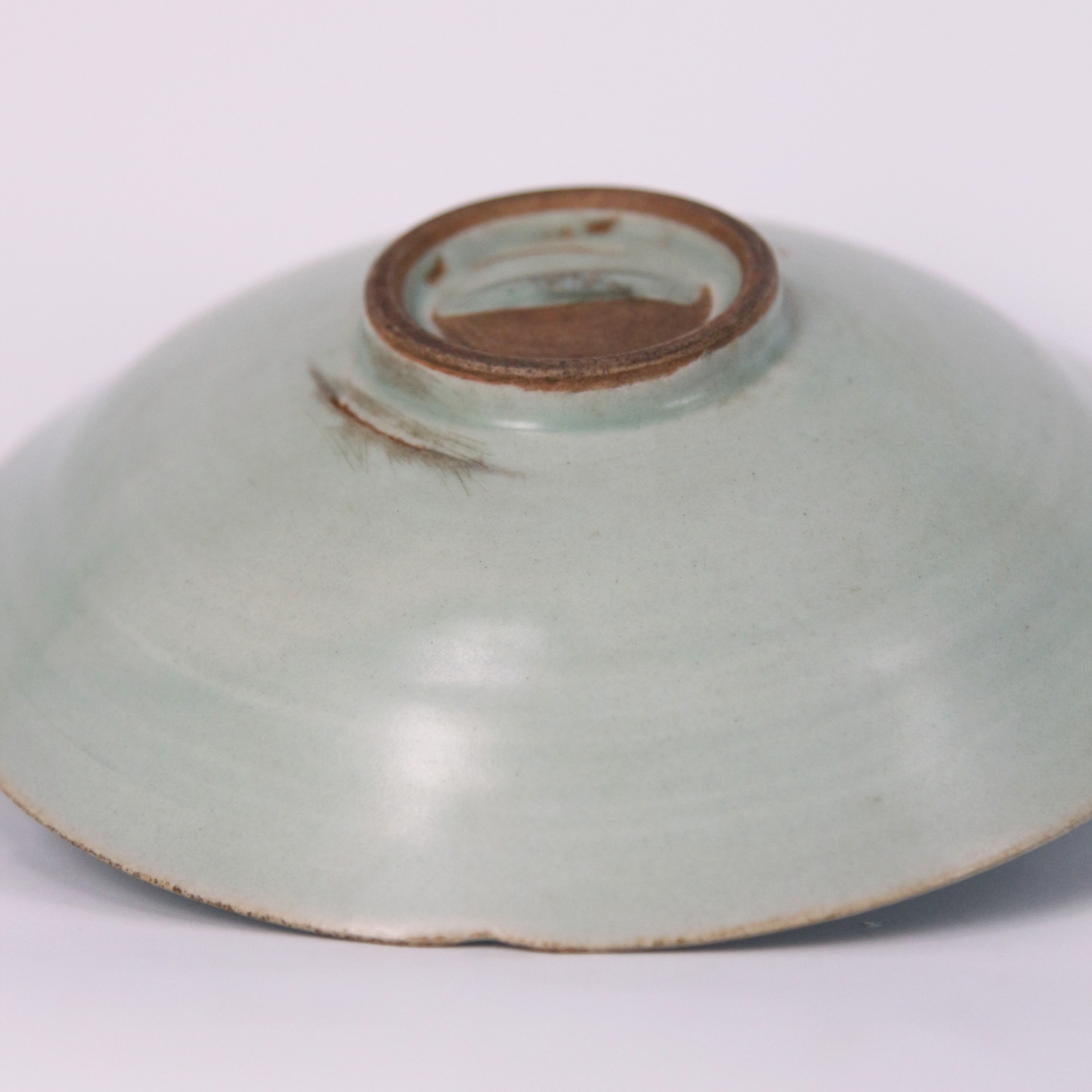 宋代青瓷追求含蓄、內斂與自然之美,龍泉窯更以釉色溫雅與造型樸簡聞名於世。此件六筋旋紋盤透過極簡的線條與柔和釉色,展現宋人「天青如水」的審美理想。盤心細膩的旋紋保留拉坯時的生命力,既是器物製作痕跡,也是宋代手工工藝溫度的體現。它兼具日常實用性與細膩美感,是龍泉青瓷風格的典型代表之一。