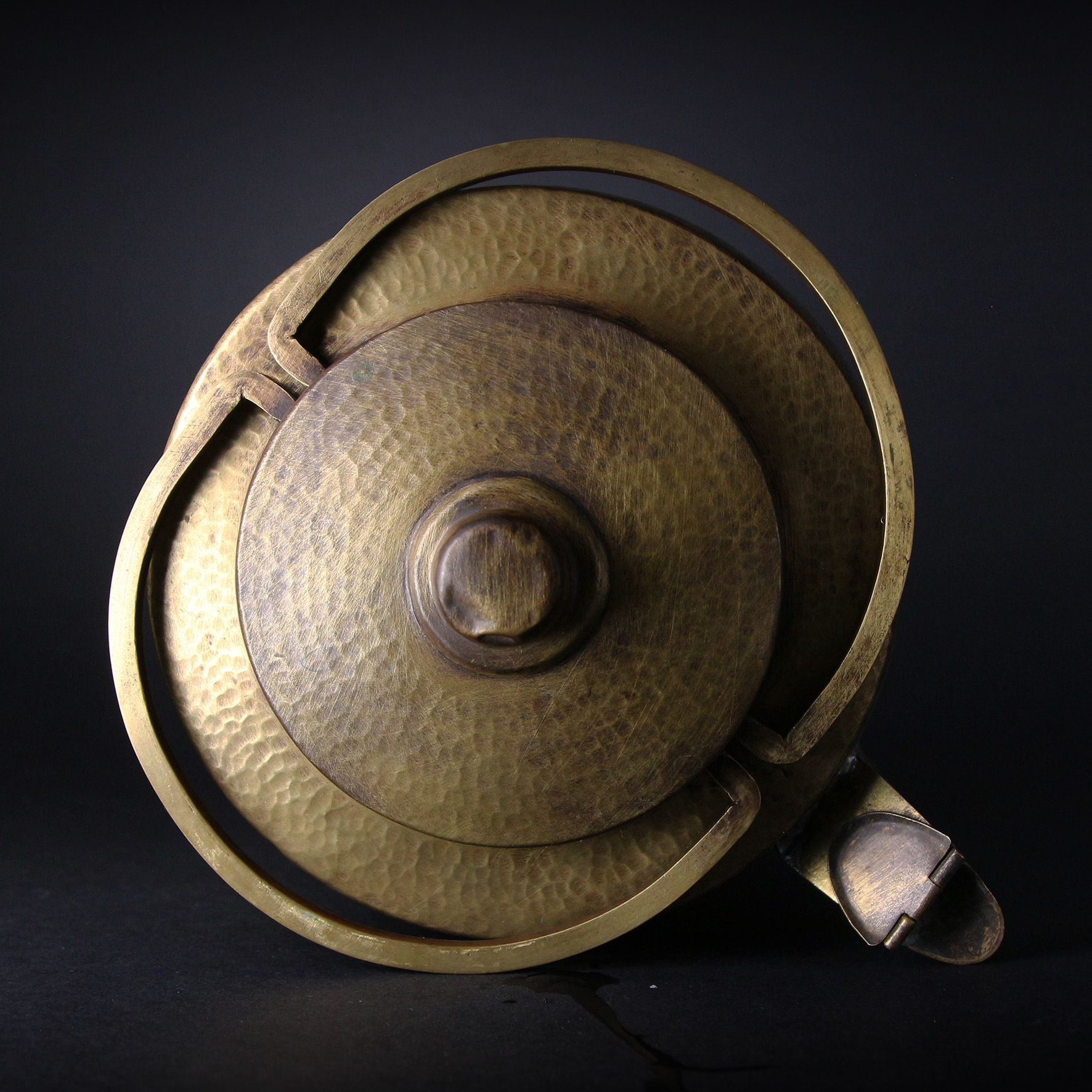 手打銅壺的價值在於其優異的導熱性和獨特的工藝。銅是優良的導熱材料,能快速且均勻地加熱水質。這種銅壺通常強調**「鎚起」的立體肌理**,每一個敲打痕跡都使表面產生細微的折射變化,使得光線在其上流動,極具觀賞性。隨著長時間的使用,銅壺表面的漆金/著色會產生自然而美麗的歲月包漿(Patina),顏色會變得更加深沉內斂,成為一把能伴隨使用者多年的實用藝術品。