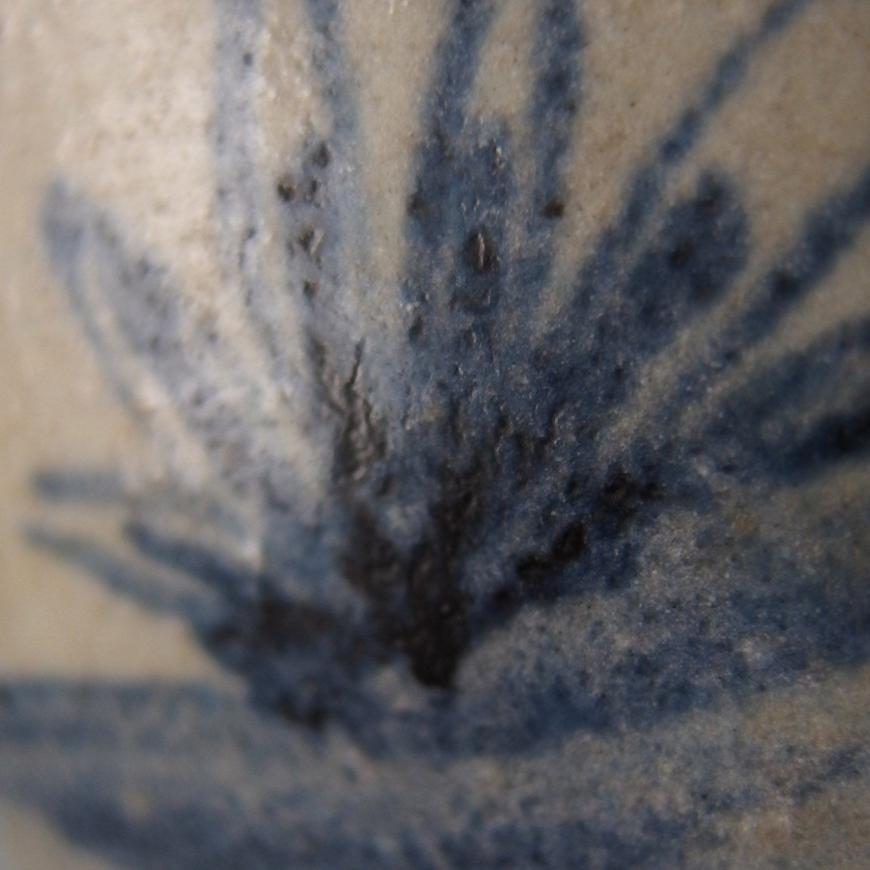 蘇麻離青為進口珍稀料,色澤層次分明,於高溫燒成後呈現出深邃如墨的藍彩蘇麻離青深入胎骨 。此罐集文人氣息與工藝之美於一身,既為陳設之雅器,亦為明代青花人物題材之經典代表。