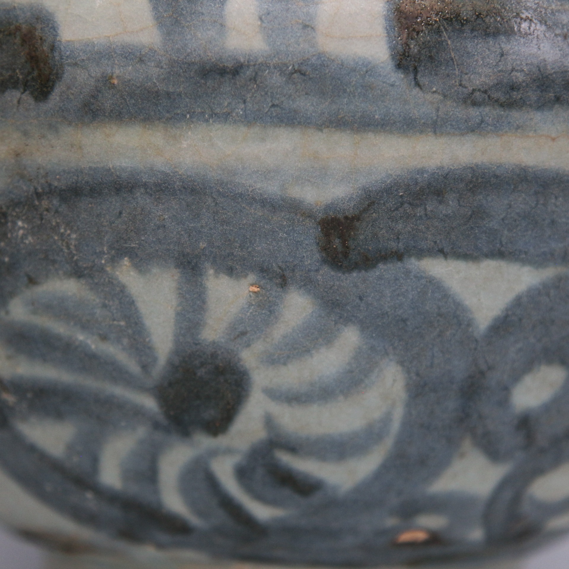 茶葉罐為明代茶文化興盛下的重要日用器,既需密封防潮,又講究陳設之美。青花花卉寓意生生不息,與茶事所追求的清雅、養性精神相互呼應。瓷與木的材質結合,展現文人生活中「器以載道」的審美情趣,使此罐不僅是茶室中的實用器物,更是一件承載明代日常文化與品味的生活藝術品。