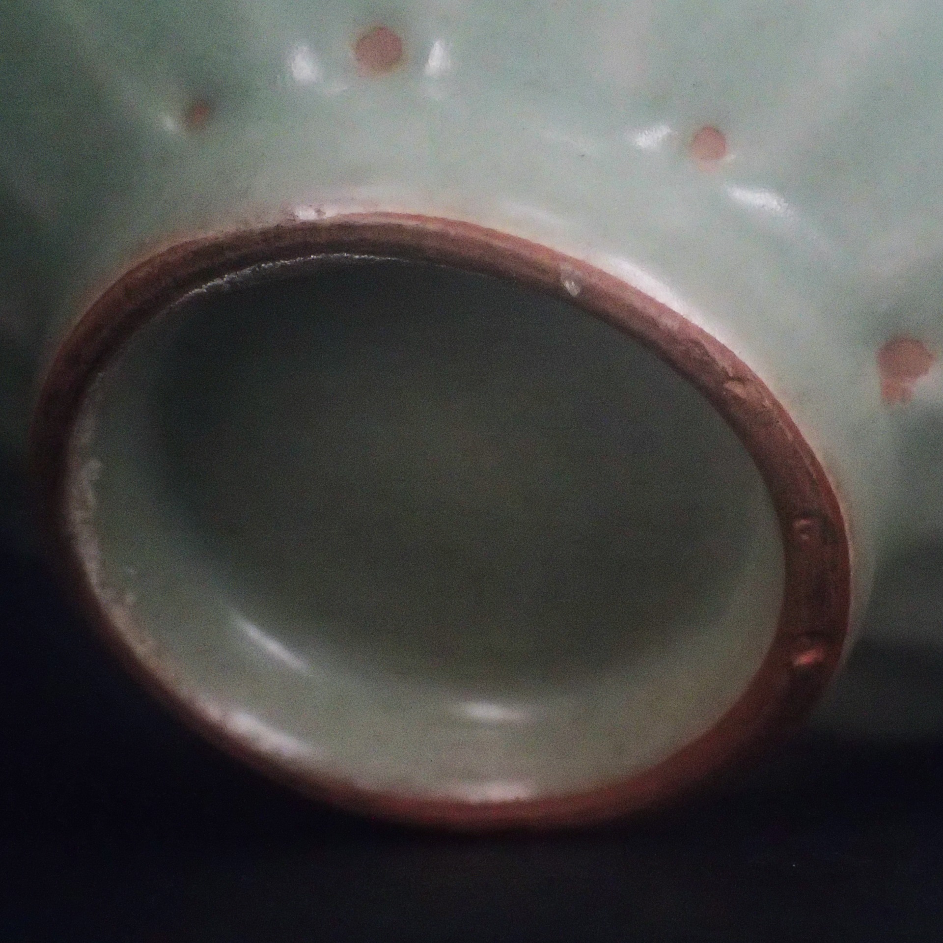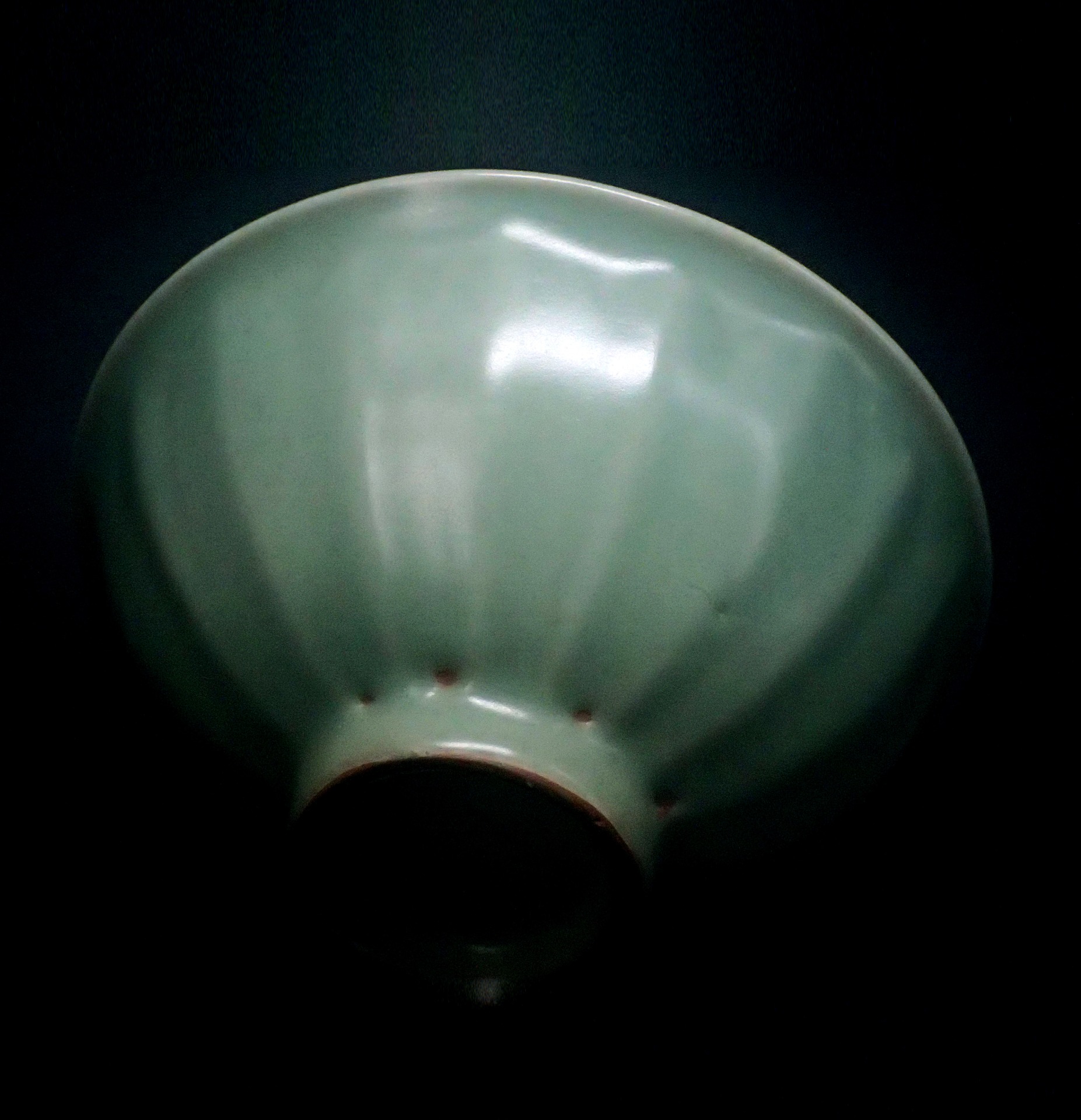 蓮花自古象徵清淨、高潔與吉祥,在明代尤受士人與宮廷喜愛,常見於器物造型與裝飾之中。龍泉窯於明代延續宋元青瓷傳統,在釉色與器形上趨於溫潤內斂,少華飾而重氣韻。此蓮花碗以含蓄造型與靜雅釉色取勝,既可作日常雅用之器,亦具文房陳設之美,體現明代文人追求平和、純淨的生活美學。