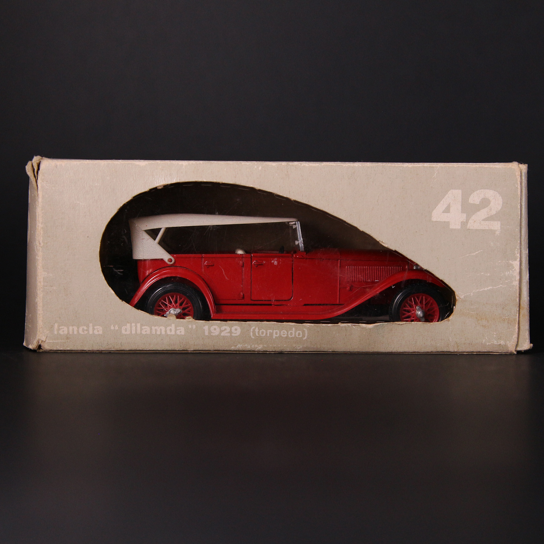 這款老爺車模型作為義大利製造的產品,體現了歐洲模型玩具工業的設計美學和製造水準。在民國時期,特別是戰後,這類進口模型成為了高階玩具和收藏品,代表著西方文化和工業技術的傳播。附帶原裝盒子(雖然圖片未顯示,但這是關鍵資訊)極大地提升了模型的完整性和收藏價值,因為原盒能提供製造商、型號、比例等重要資訊,並有助於保存。這件模型不僅是汽車歷史的縮影,也是研究20世紀中期玩具文化和跨國貿易的珍貴實物。