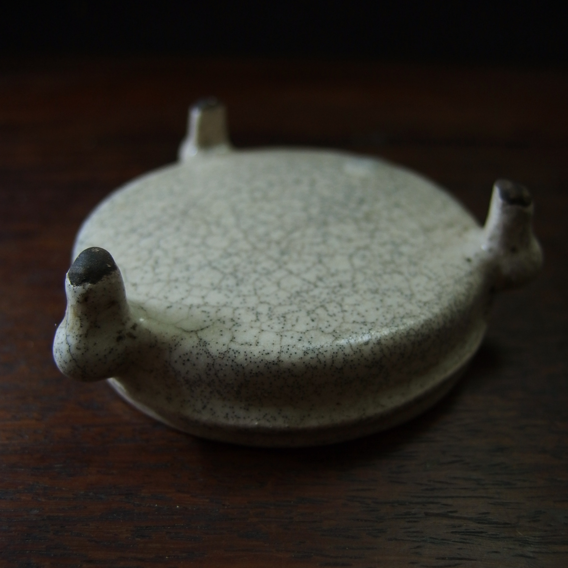 米白釉色澤淡雅,映襯書齋靜謐氛圍,尤適用於墨池、印泥座等用途。此類文房器不僅具實用性,更展現文人對器物品味的追求,是文房清供中不可或缺的雅玩之物。