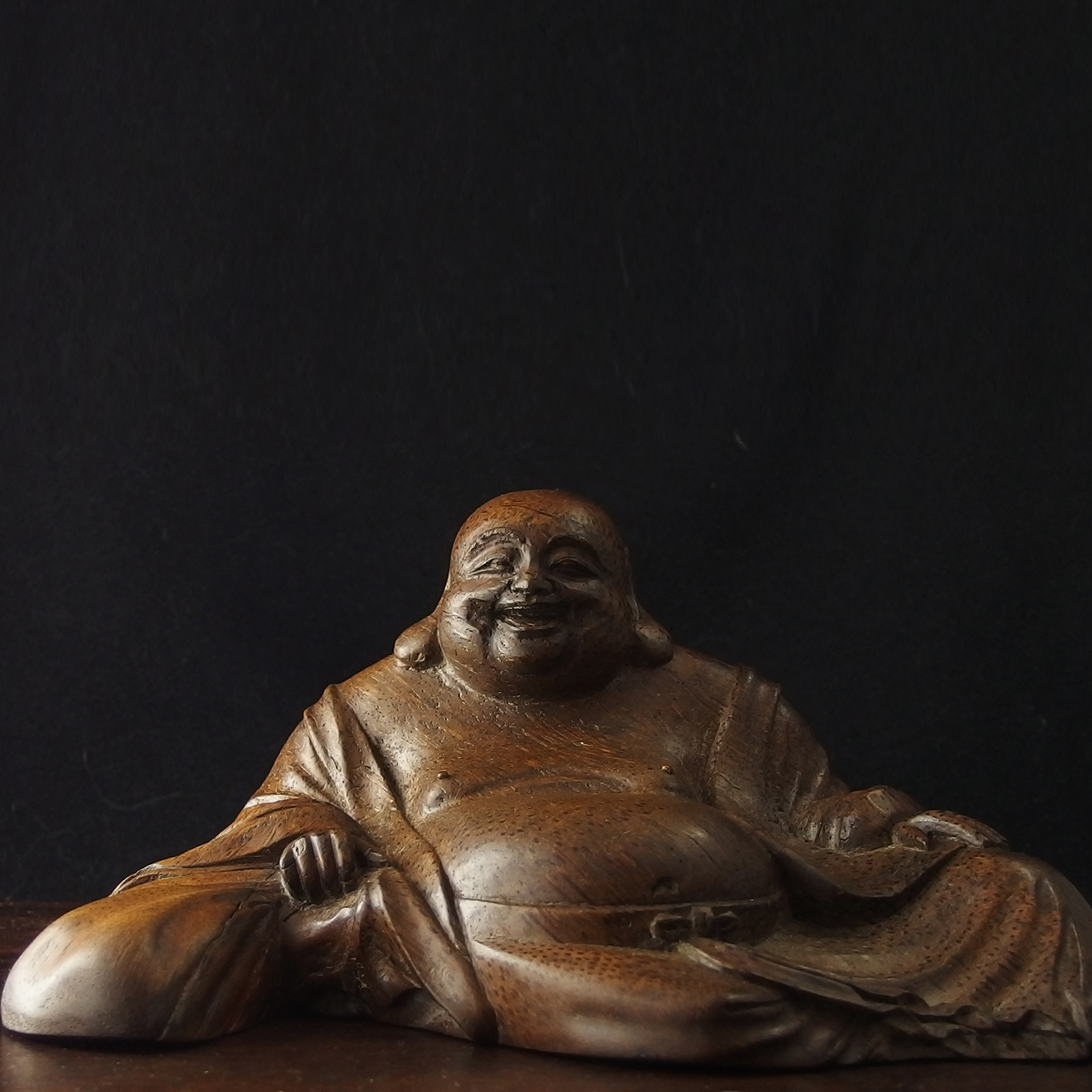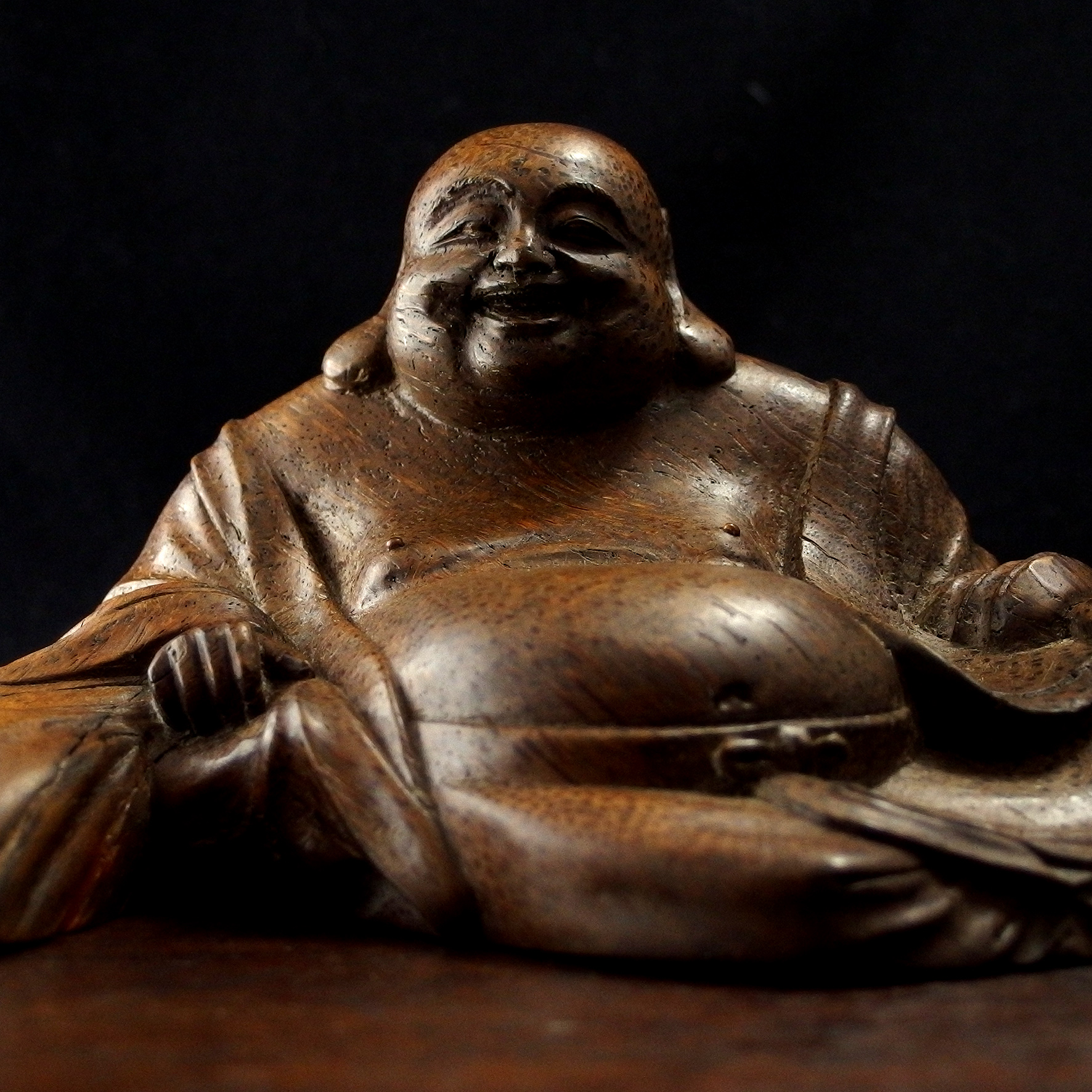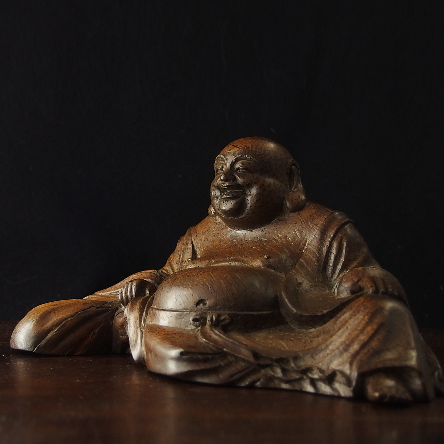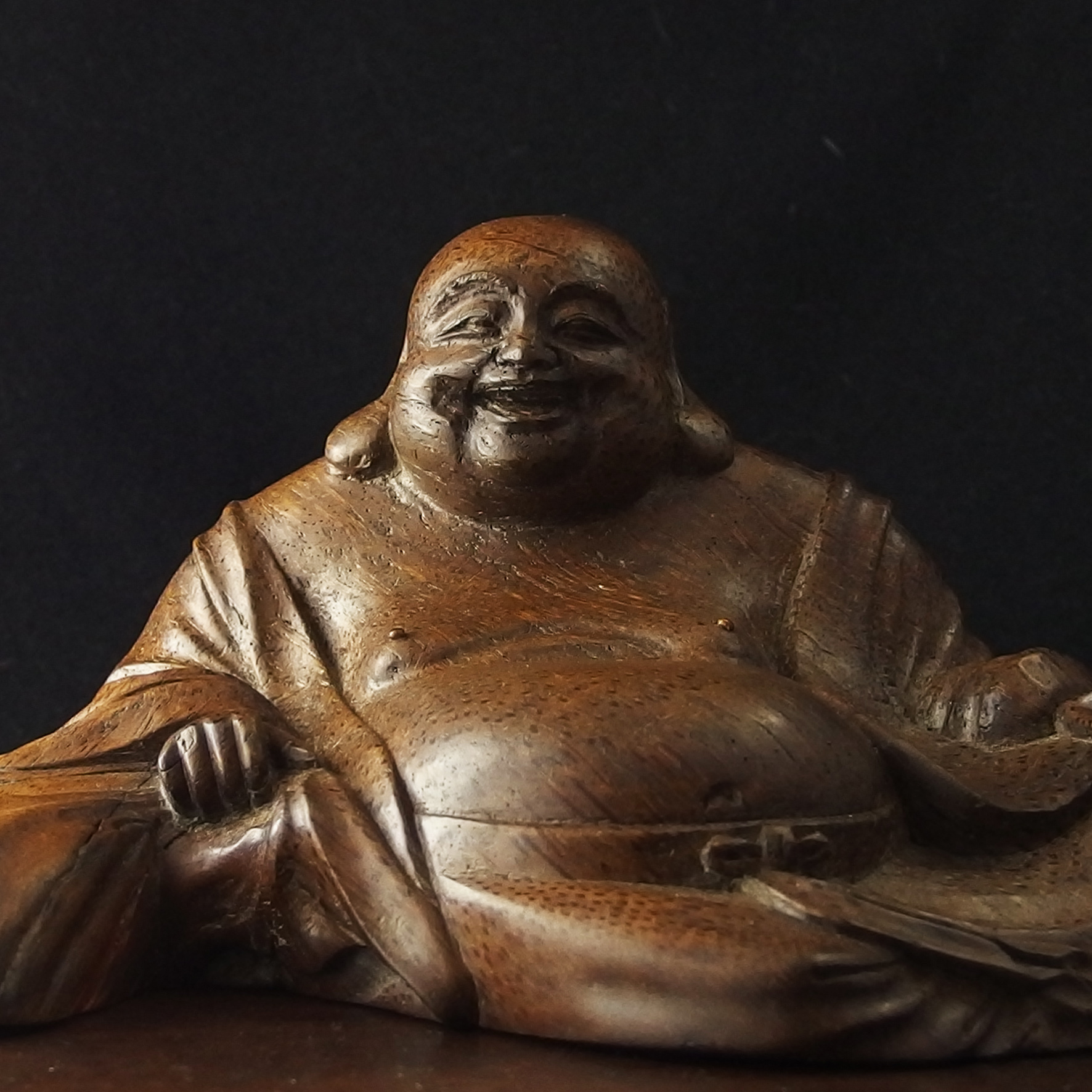 此座像以竹根雕刻而成,取材天然,巧妙運用竹根的紋理與形態,雕刻出布袋和尚憨態可掬、笑口常開的神情。布袋和尚袒胸露腹,神情安詳,衣褶流暢自然,展現了清代民間雕刻家對材質與刀工的精湛掌握。